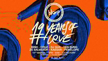No próximo 14 de março de 2026, Lisboa volta a ser palco de uma das celebrações mais simbólicas da cultura clubbing nacional. A Bloop Recordings assinala o seu 19.º aniversário com o evento Bloop • 19 Years Of Love, uma edição especial que promete atravessar o dia e a noite numa verdadeira maratona de pista de dança.