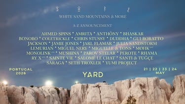 O arranque acontece com uma opening em localização secreta, criando desde logo uma sensação de exclusividade. Nos dias seguintes, o festival instala-se nas White Sand Mountains, com sessões que decorrem entre a tarde e a noite, muitas vezes acompanhadas por sunsets que se tornam parte integrante da narrativa sonora. Para além da música, o YARD aposta numa oferta alargada que inclui gastronomia, alojamento e atividades culturais, aproximando-se cada vez mais de um formato de experiência completa.